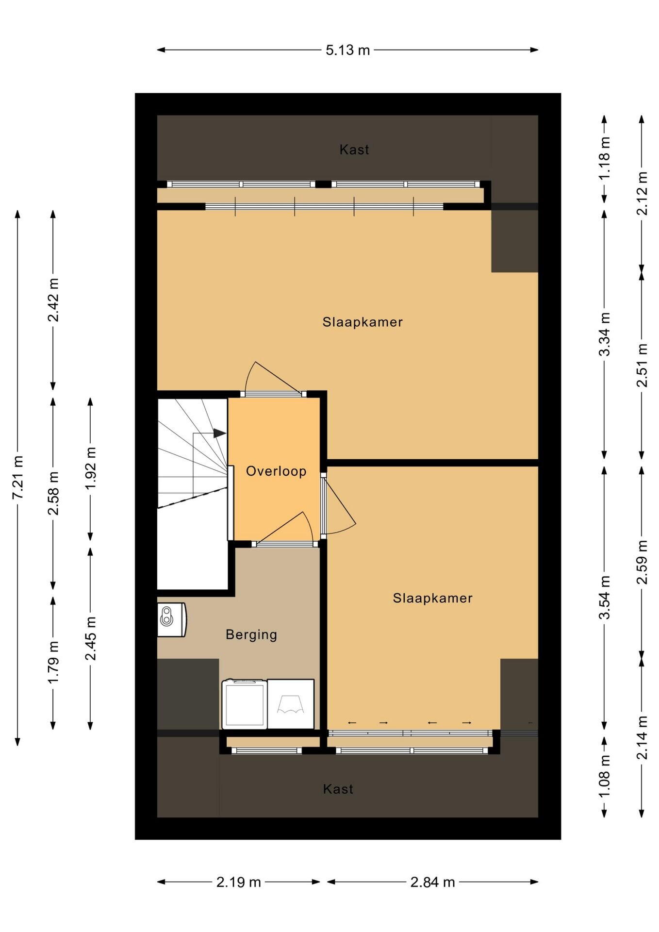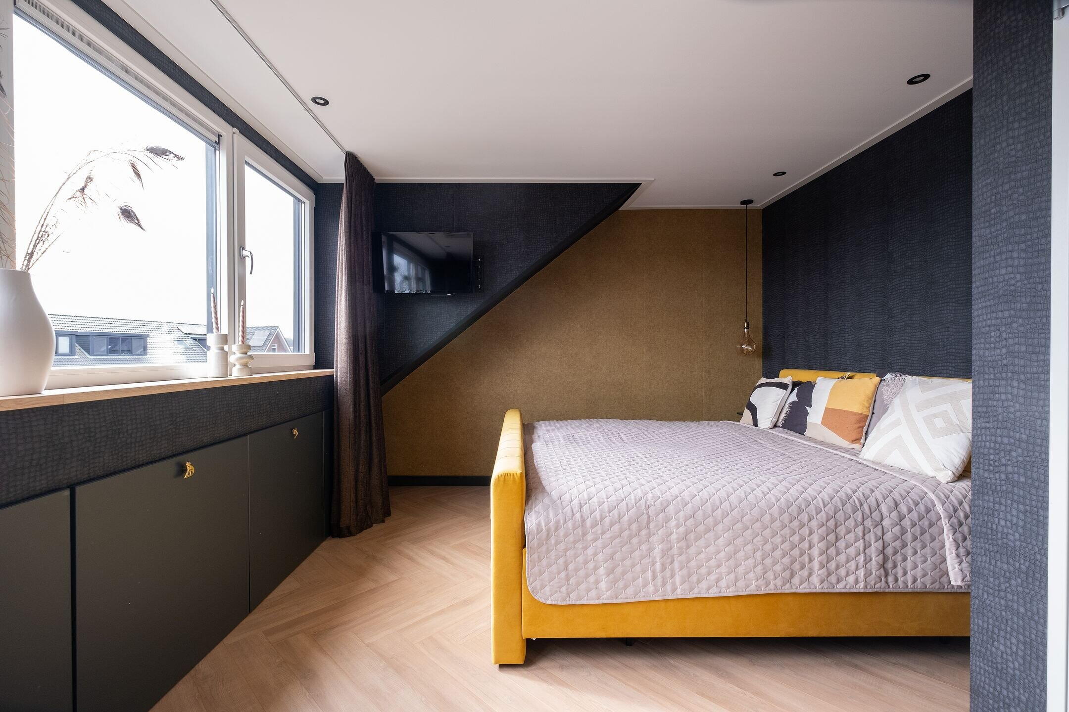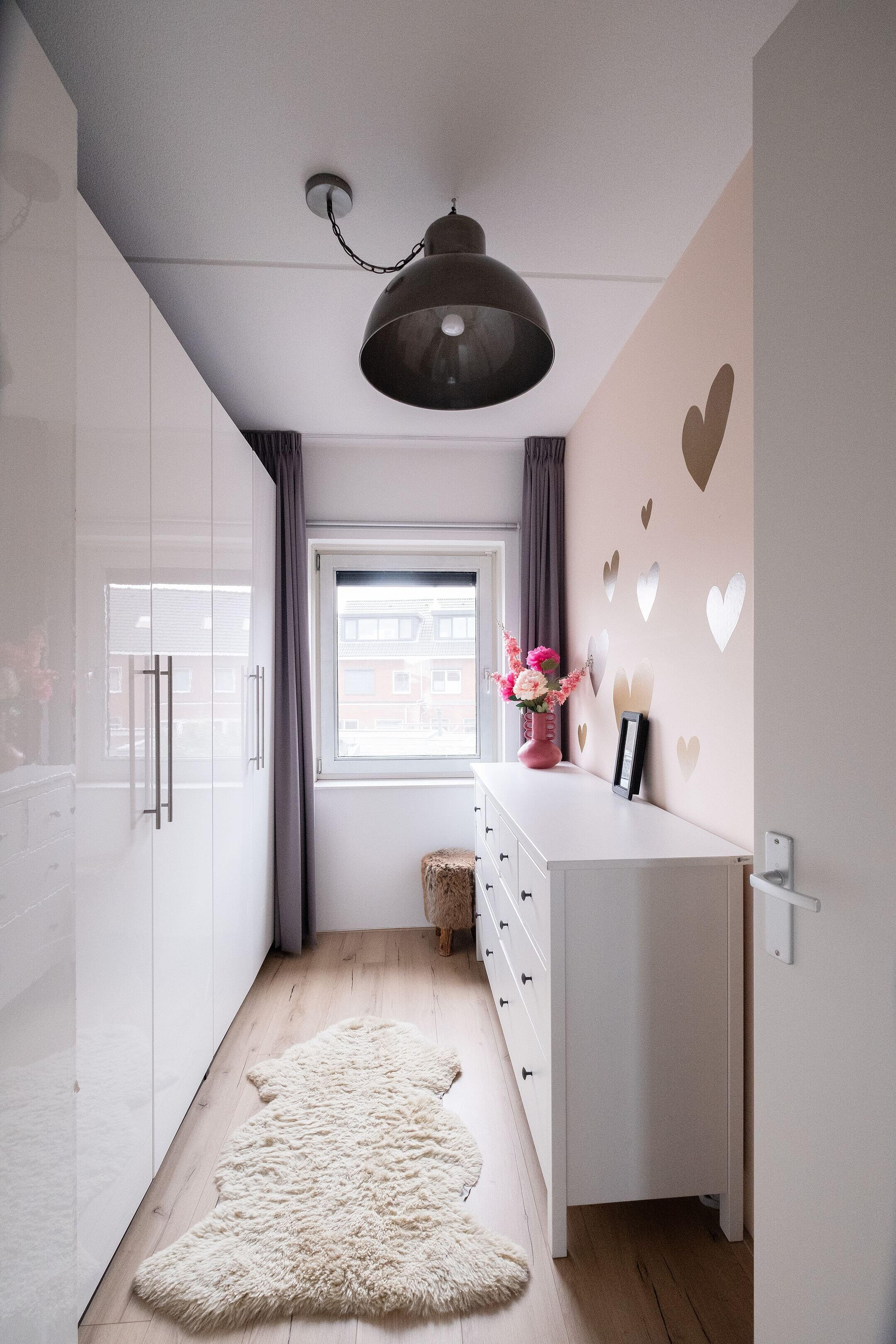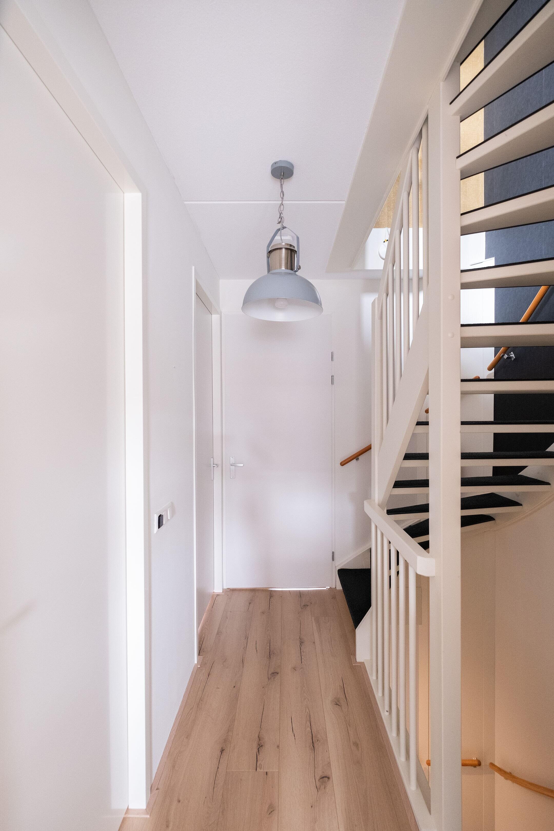 Daarnaast is er een aparte bergkast met de aansluitingen voor wasmachine en droger, de cv-installatie, mechanische ventilatie en de omvormer voor de 18 zonnepanelen. Extra bergruimte vind je op de vliering, die over de volledige breedte van de woning loopt en bereikbaar is via een vlizotrap.